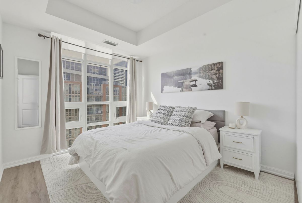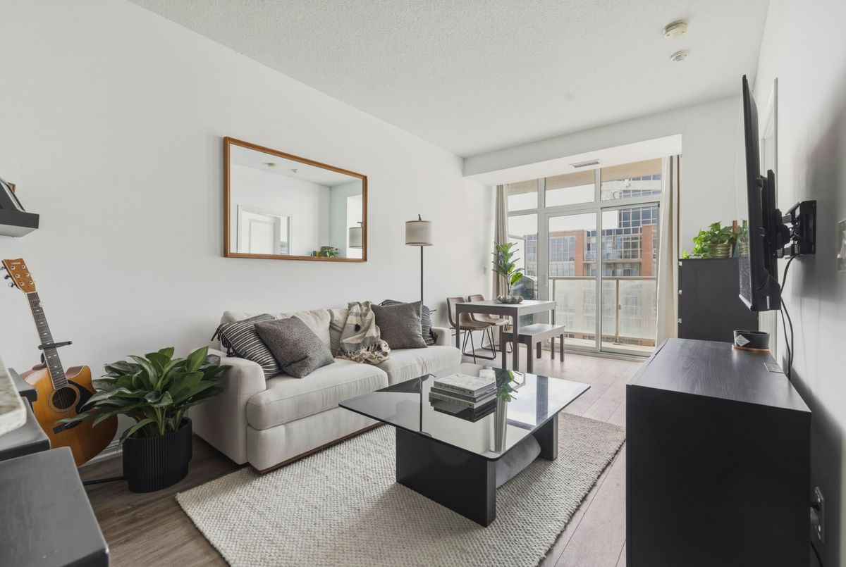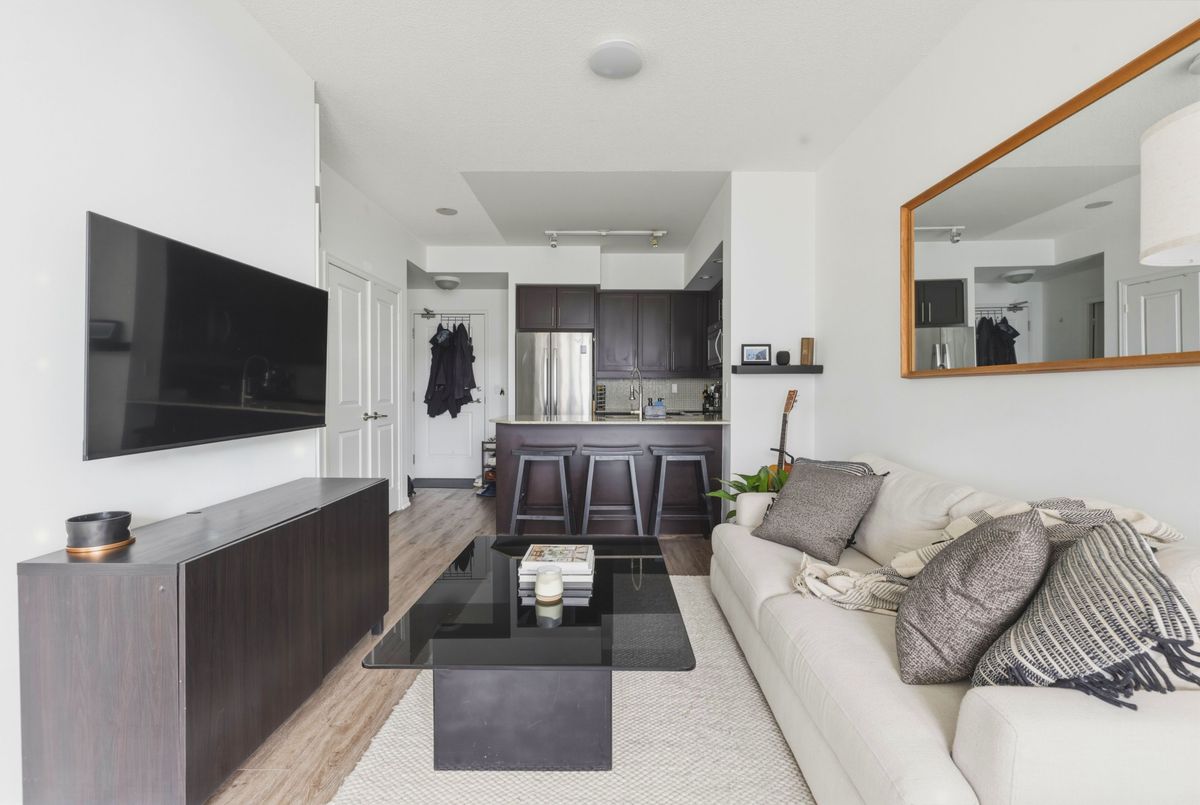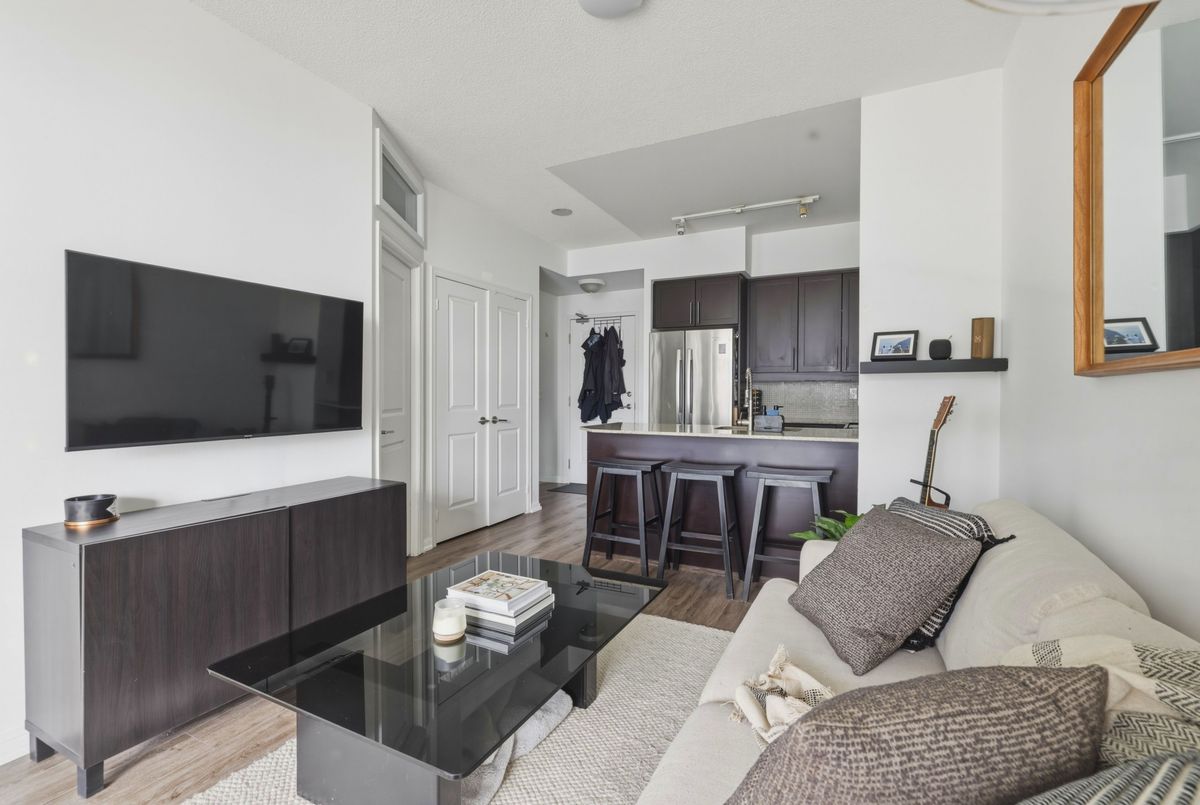 Immaculately kept 1+1 west facing unit in the Liberty Lakeview Towers. Den has a door and closet allowing it to function as a good sized second bedroom. Parking and locker included. West facing, provides ample light throughout. View of the lake from your balcony and from your bedroom. Generous sized rooms for comfortable living. Residents Benefit From 24-Hour Concierge & Security, Ample Visitor Parking, & Resort-Style Amenities Incl: Indoor Pool, Fully Equipped Fitness Centre, Party & Games Rooms, Rooftop Terrace, Theatre Room, Golf Sim, Bowling, Guest Suites, & Much More. Step Outside & Immerse Yourself In The Community - Dog Parks, Restaurants, Cafes & Lamport Stadium Are All Nearby. Take Part In Vibrant Local Events & Walk To Grocery Stores, TTC Access & All Transportation Options, Personal Services, & Shopping At Shops At King Liberty. All Of This Just Moments From The Unmatched Energy Of King West - The City's Most Dynamic & Sought-After Neighbourhood. Welcome Home! Currently rented to a AAA tenant who is willing to stay or go.